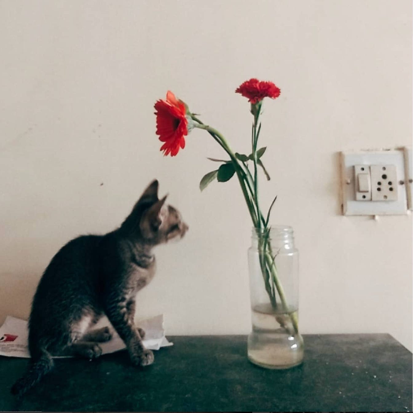 एक पल के लिए उसे लगा उसके पीछे साँप हैं, फिर समझ आया उसकी ही पूँछ थी, सी-सी हर तीन मिनट में भूल जाती है की उसकी पूँछ है या फिर उसे हर तीन मिनट में याद आता है कि अरे! मेरी पूँछ भी है । एक अजीब सी जानी पहचानी महक उसे बार बार गुलदस्ते की ओर धकेलती, और उसका मन करता की वो अपनी इस गम्भीर curiosity को मिटाने के बाद इस गुलदस्ते को नीचे धकेल दे, पर एक पुराना पीला कप फोड़ने पर रेखा ने उसे पिछली बार खाना नहीं दिया था